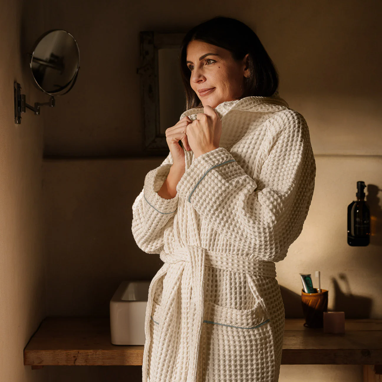 Accappatoio nido d'ape con cappuccio